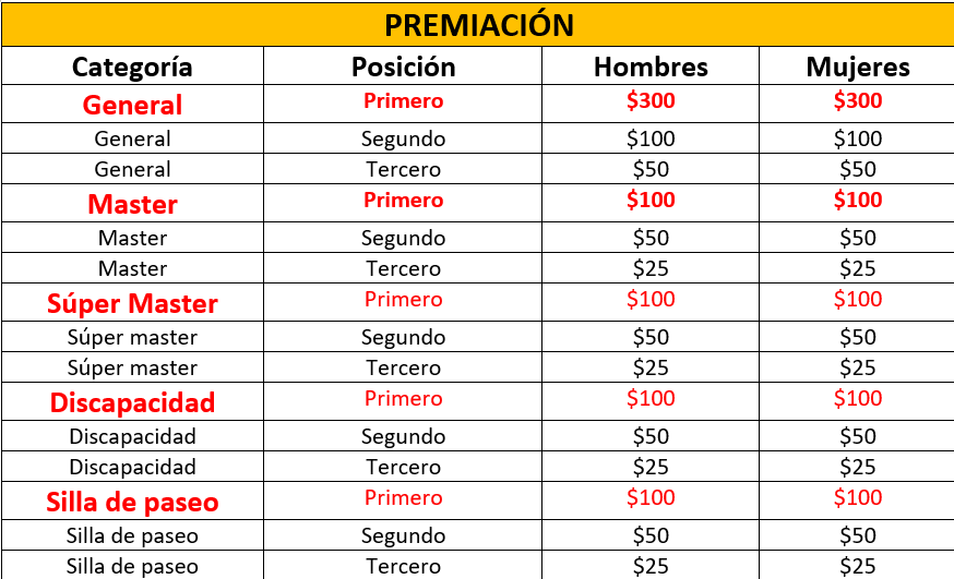 Para que una categoría sea válida y premiada deben tener un mínimo de 15 inscritos.